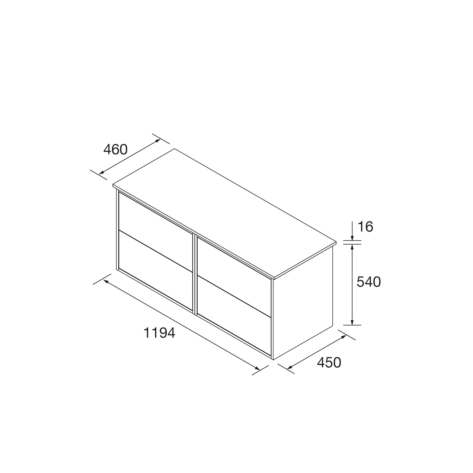 - 2 mueble de baño de cajones con guías ocultas, cierre amortiguado y regulación en altura.