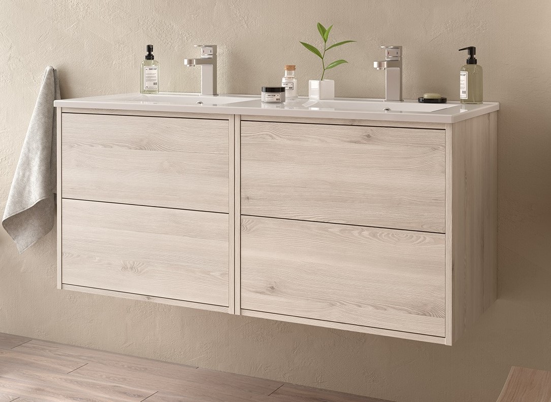 - 2 Muebles de baño de cajones con guías ocultas, cierre amortiguado y regulación en altura.