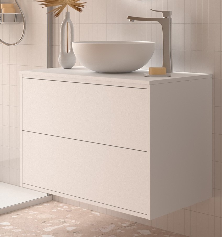 - Mueble de baño de cajones con guías ocultas, cierre amortiguado y regulación en altura.