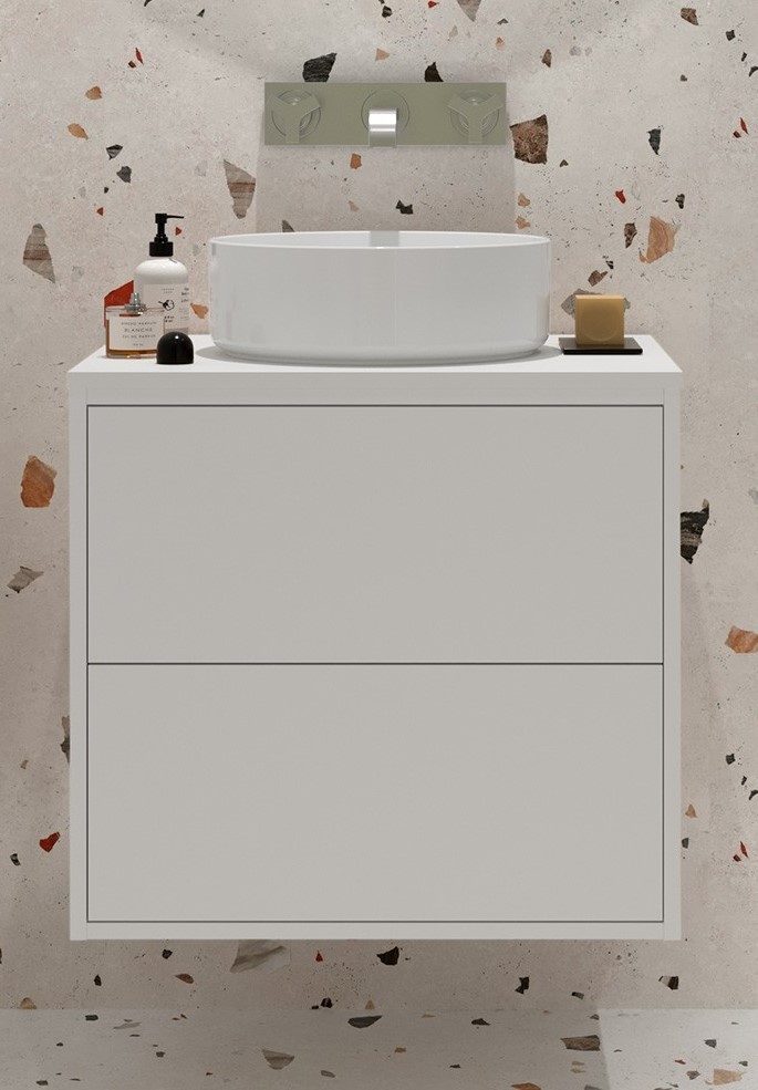Esta serie de muebles de baño ofrece la posibilidad de contar con todo en orden gracias al organizador de cajón incluido de serie y un funcionamiento mejorado con el sistema de apertura push de Hettich.