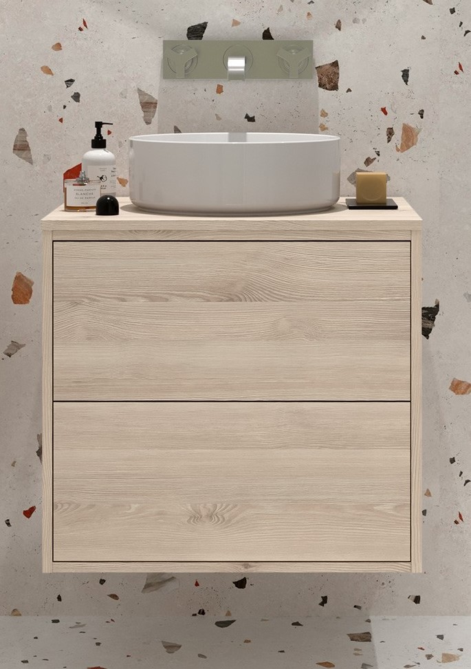 Esta serie de muebles de baño ofrece la posibilidad de contar con todo en orden gracias al organizador de cajón incluido de serie y un funcionamiento mejorado con el sistema de apertura push de Hettich.