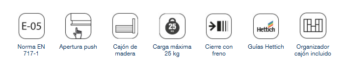 - Frentes y laterales fabricados en tablero de partículas laminado de 16mm.