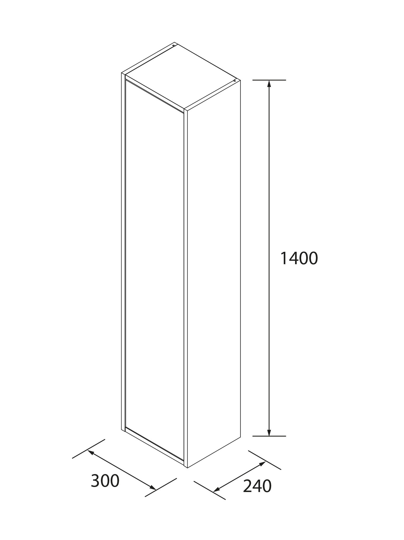El pilar suspendido de la familia de muebles de baño Optimus, cuenta con una apertura push, reversible y con baldas de madera.