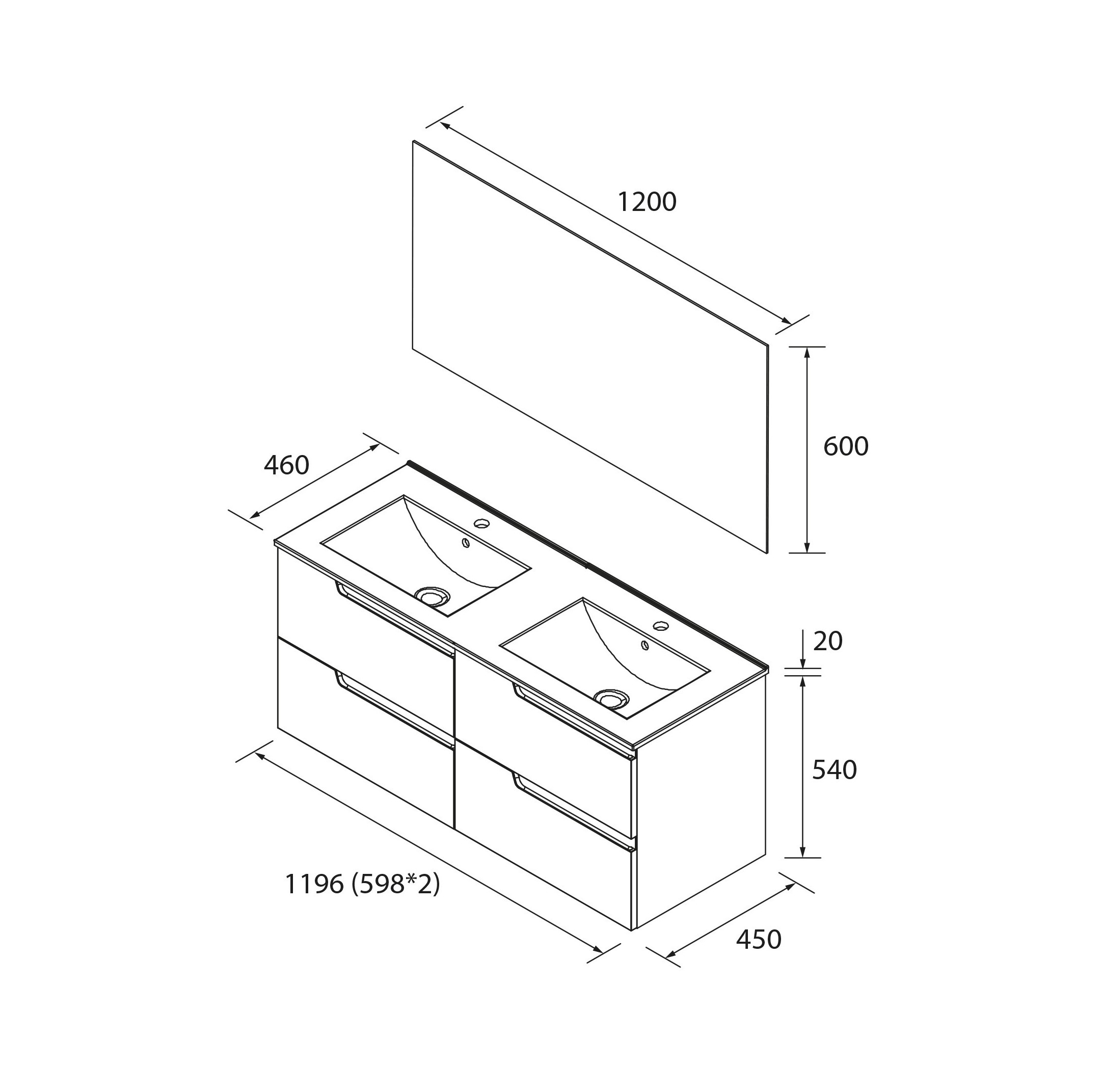 · Mueble de baño de cuatro cajones de medida: 1200mm