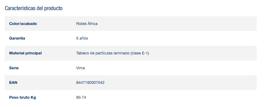 SALGAR VIMA CONJUNTO ROBLE AFRICA 100 CM