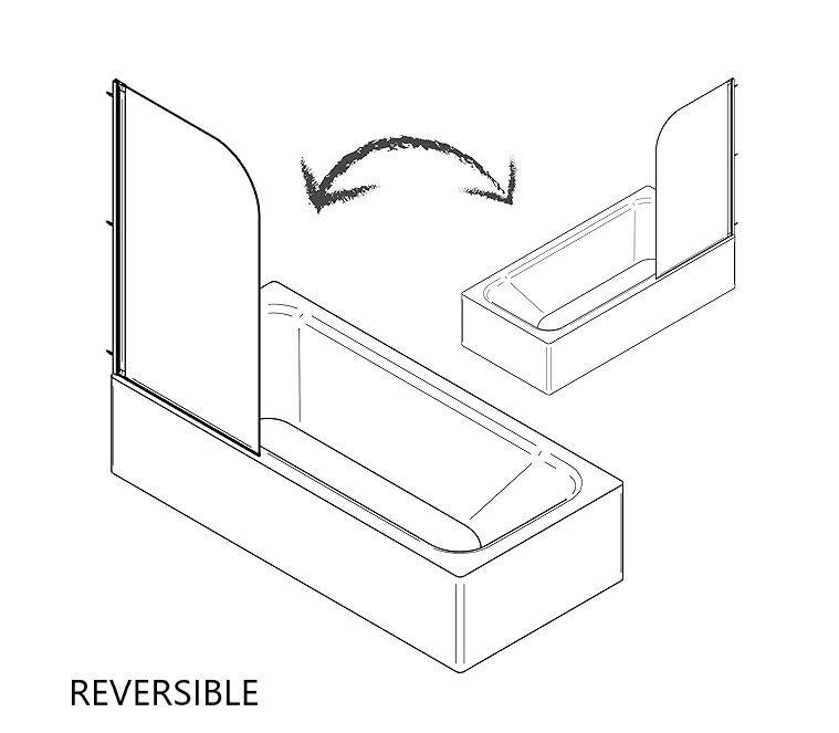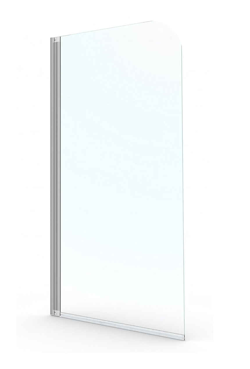 Biombo bañera SCREEN TRANSPARENTE con una altura de 140 cm y anchura de 85 cm, con perfil de aluminio cromo y cristal templado de 5 mm.