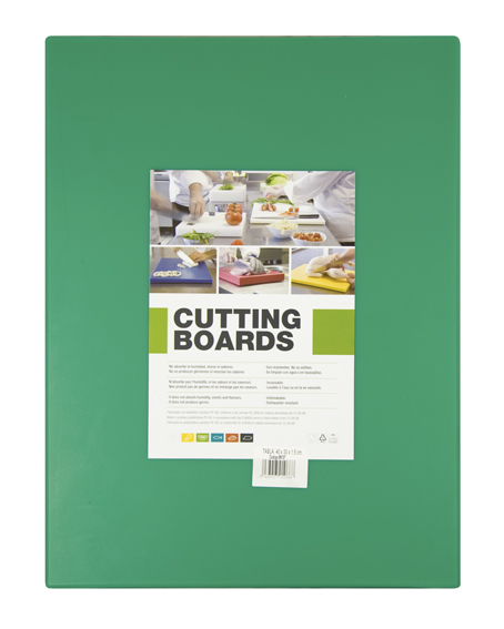Tabla de cocina color verde, específica para su uso con frutas y verduras. Medidas 40x30x1,5 cm.