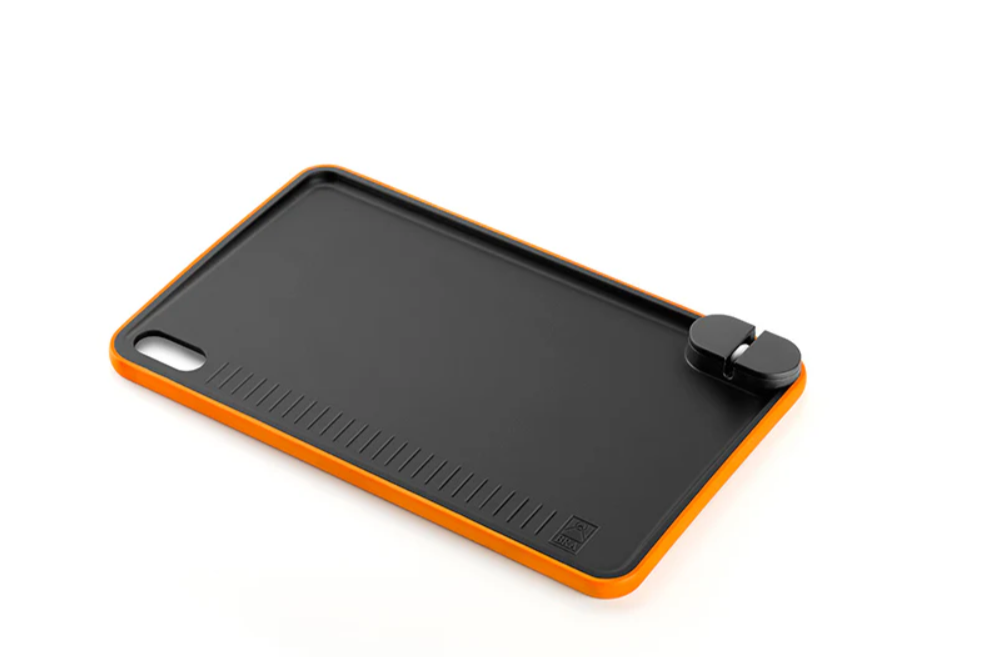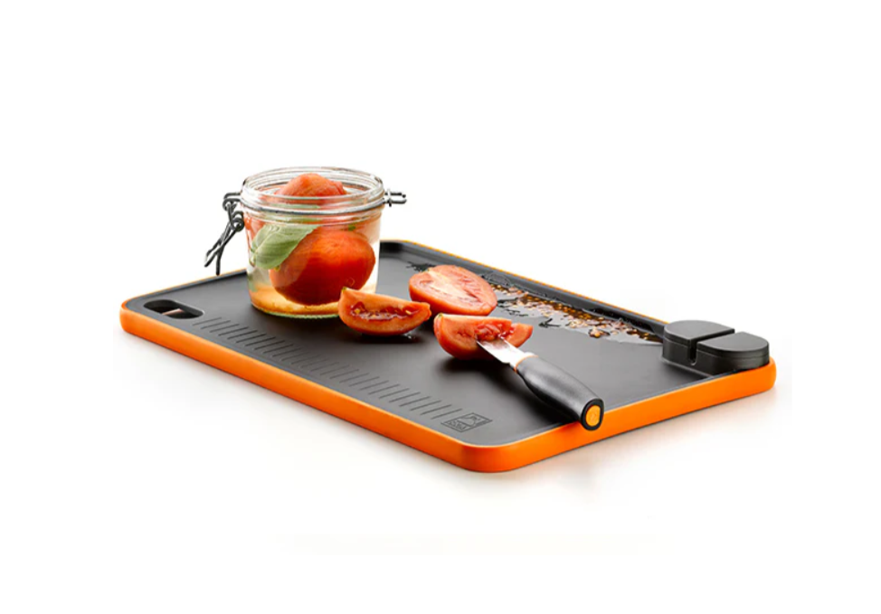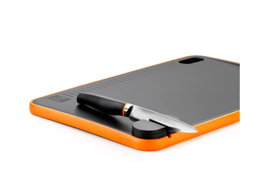 iva incl.La tabla de cortar Efficient con afilador de cuchillos incorporado está fabricada en materiales de alta calidad (PP y PTE) para aportar una alta resistencia. Su diseño inclinado le permitirá mantener la superficie de trabajo libre de líquidos y restos del corte, facilitando una fácil recogida de líquidos. Incluye además una práctica guía de corte con separaciones de 1 cm y un práctico agujero para manipular y colgar.