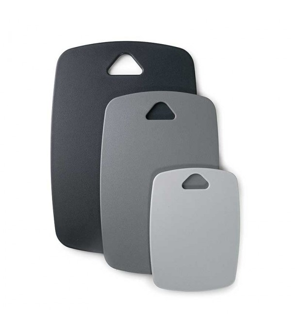 iva incl.Pack de 3 tablas de corte en polipropileno de alta densidad y máxima resistencia con superficie de corte de doble cara.