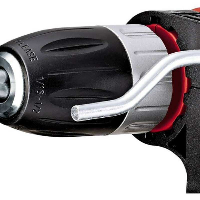 Porta brocas de sujeción rápida Control electrónico de las revoluciones con preselección de velocidad 2 funciones: Perforación y taladrado de percusión Con rotación hacia la derecha y la izquierda para taladrado y atornillado Con tope de profundidad hecho de metal Con un práctico enganche de correa