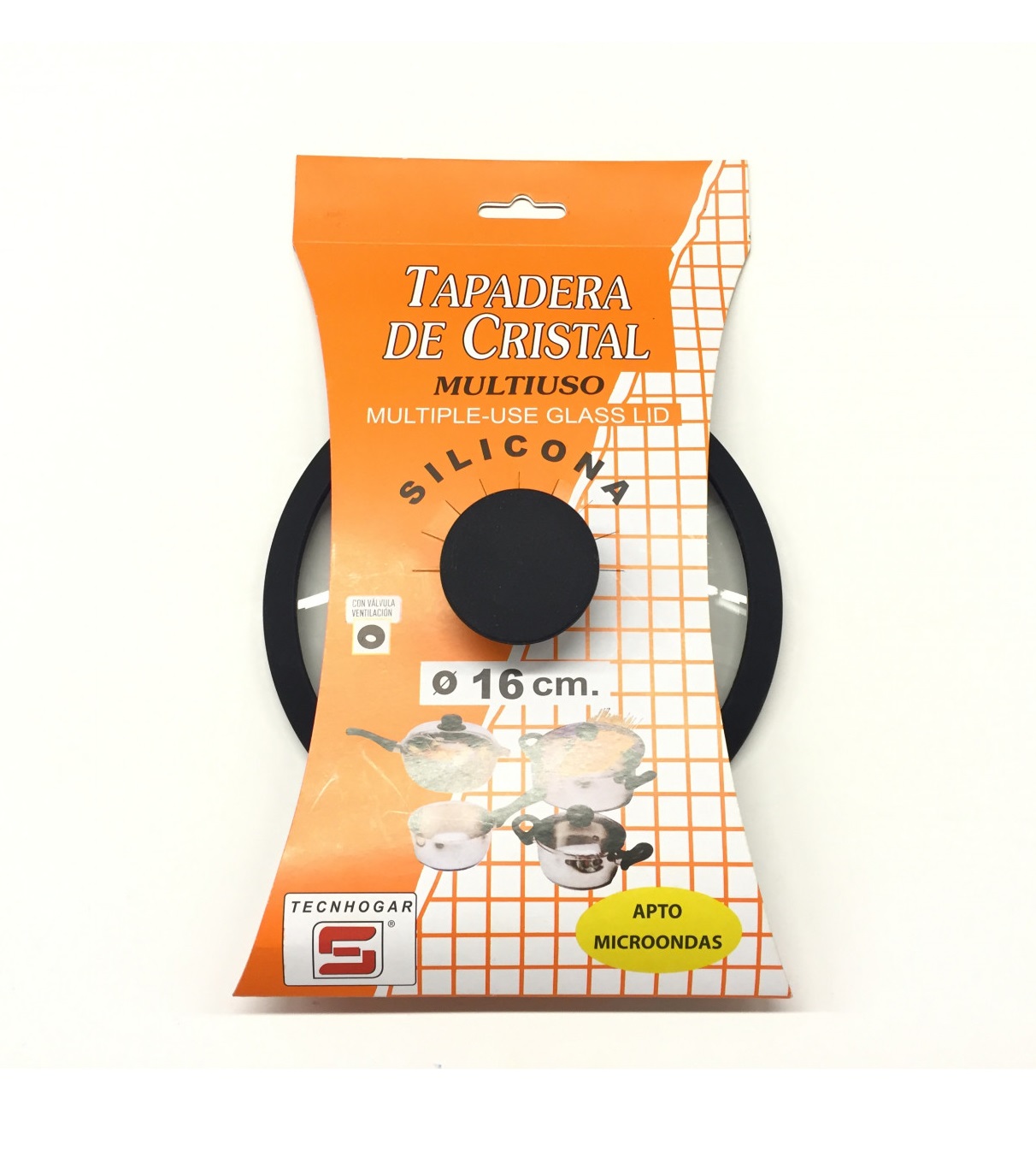 TAPA CRISTAL ARO Y POMO DE SILICONA 16CM TECNHOGAR