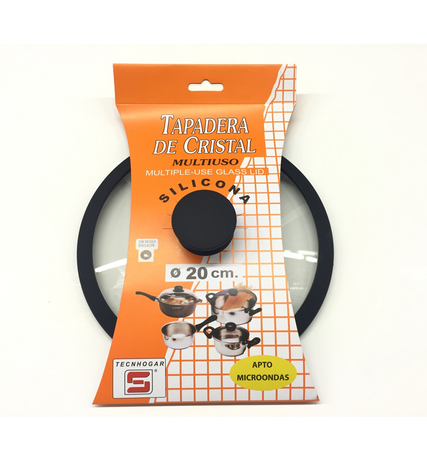 TAPA CRISTAL ARO Y POMO DE SILICONA 20CM TECNHOGAR