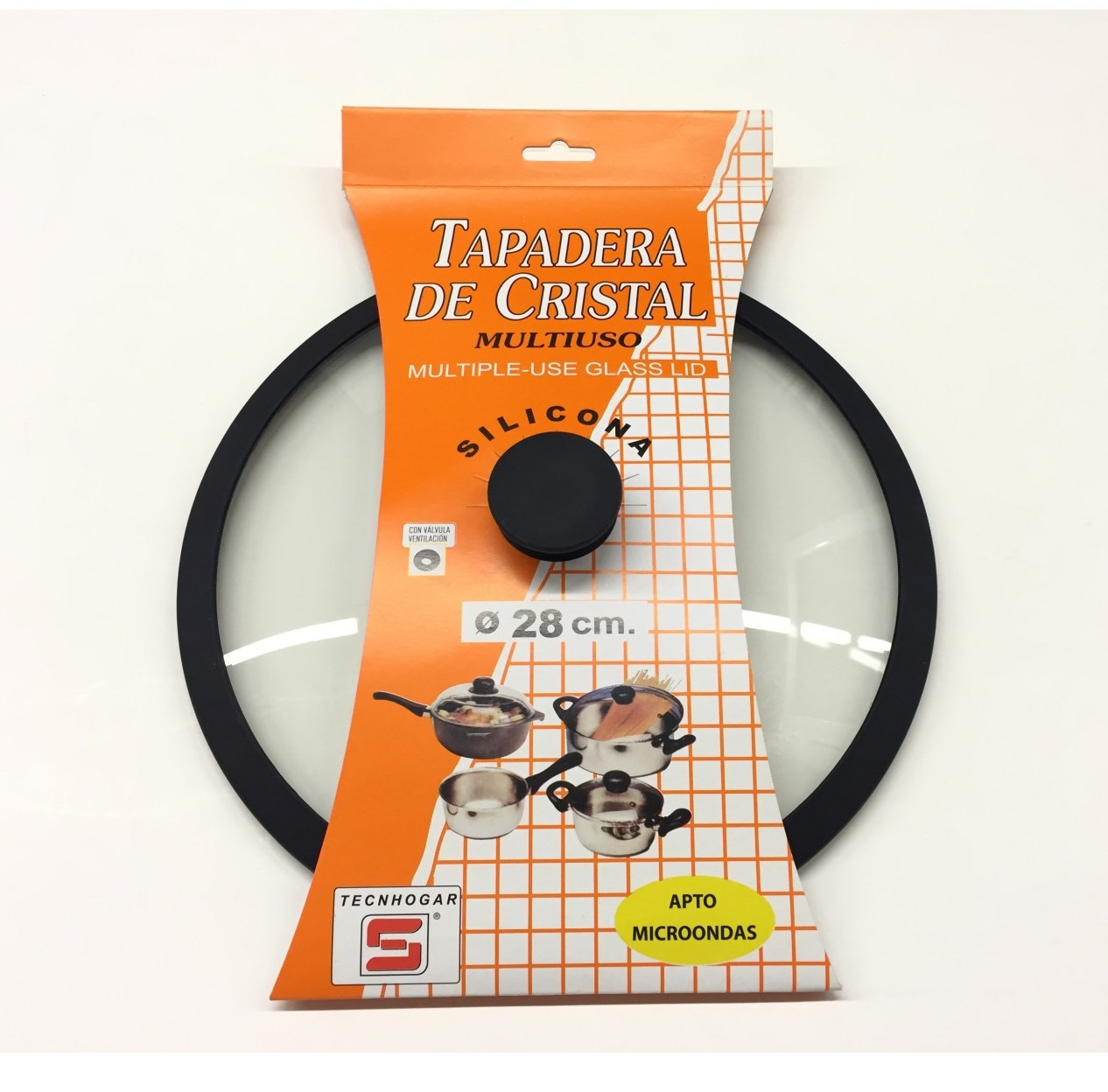 TAPA CRISTAL ARO Y POMO DE SILICONA 28CM TECNHOGAR