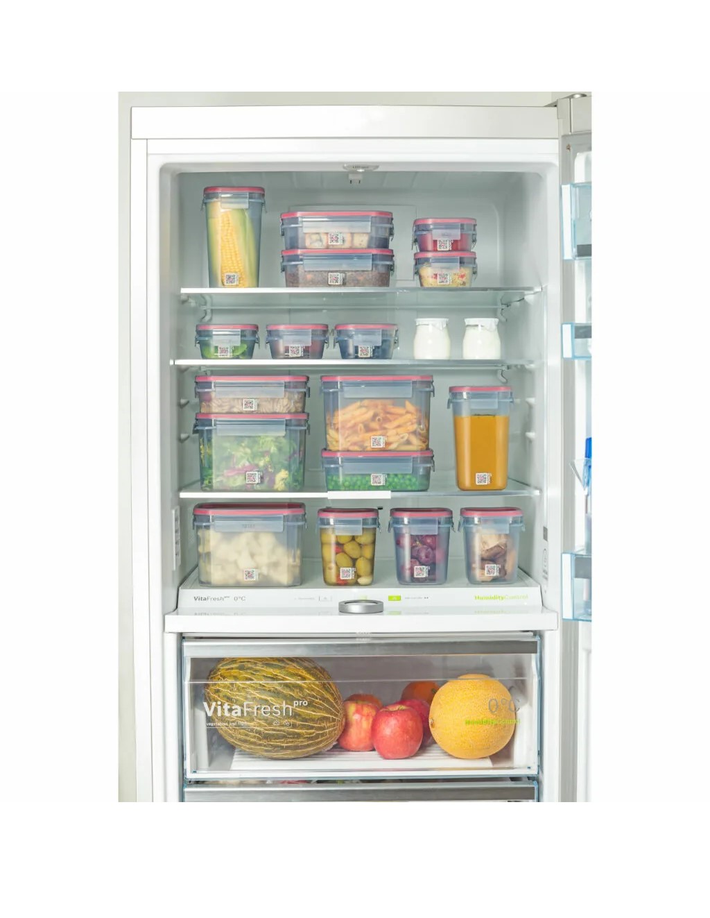 Escaneando el código QR en la tapa, puedes acceder a la aplicación que te permite llevar un registro de la fecha de caducidad de tus alimentos almacenados. Esto te ayuda a evitar desperdiciar alimentos y a mantener un control más eficiente de lo que tienes en tu nevera.