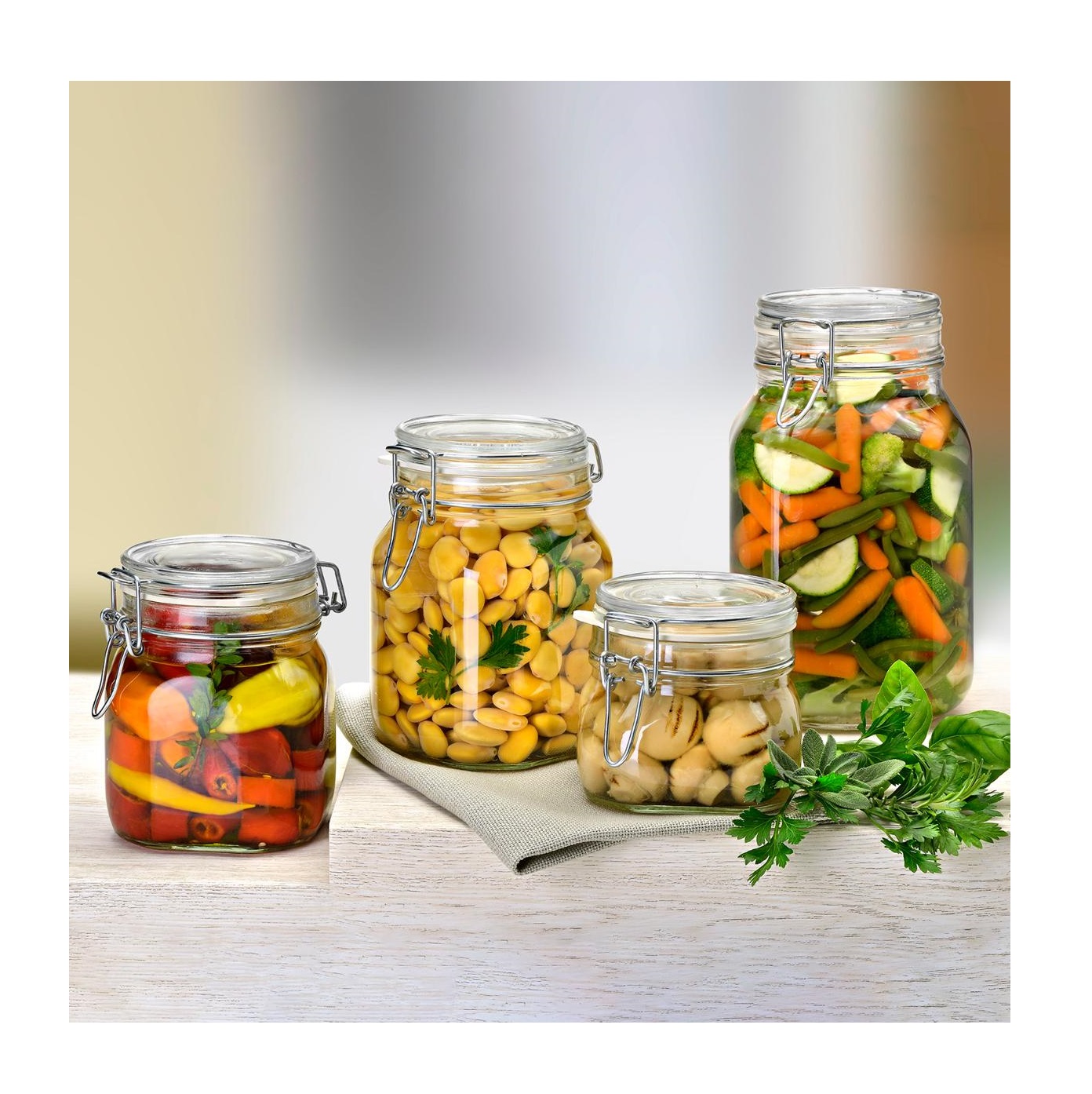 Bote de vidrio hermético con cierre clip de acero para asegurar la estanqueidad