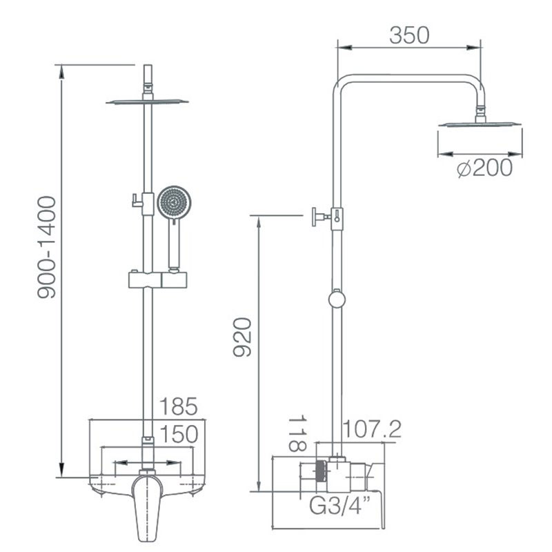 Mango ducha redondo.