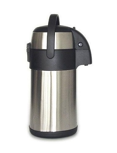 Termo dosificador de acero inoxidable. Capacidad 2,5 litros. Cierre de seguridad para transportar líquidos. Conservación 24 horas.
