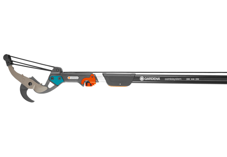 iva incl.La Tijera de pértiga de yunque Combisystem de GARDENA es perfecta para cortar madera y ramas viejas en lugares altos y con menos esfuerzo gracias a que se consigue 5 veces la transmisión de la fuerza. Junto con un mango telescópico combisystem de GARDENA, es muy sencillo cortar las ramas desde el suelo sin necesidad de escaleras. El sistema de bloqueo garantiza que la conexión se mantenga fija. Garantiza un corte sin esfuerzo de ramas de hasta 35 mm de diámetro. El resvestimiento antiadherente de la cuchilla asegura un corte limpio y preciso, asi como una fácil limpieza. Incluye empuñadura en forma de D para garantizar un trabajo más fácil y eficiente. La longitud de la cuerda es de 4,7 m, anti- roturas y fácil de manejar. También puede usarse sin el mango. 25 años de garantía