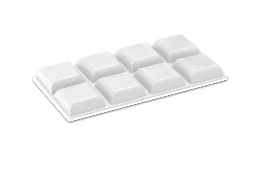 Tope protector multi-uso adhesivo. Fabricados con PVC son ideales para amortiguar golpes y para proteger superficies de materiales delicados. Conjunto de 8 piezas. Fijación con adhesivo. Medidas: 16x16x6 mm.