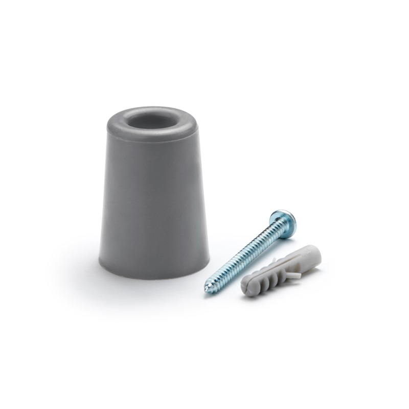 Por su geometría (el tornillo queda escondido), y por el material empleado (caucho), podemos colocar el tope en el suelo o en la pared, el impacto será absorbido en cualquier posición.