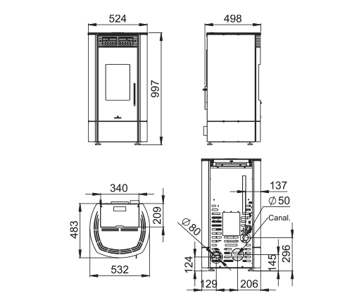 TREBOL ESTUFA DE PELLETS 9 KW NEGRO (CANALIZABLE)