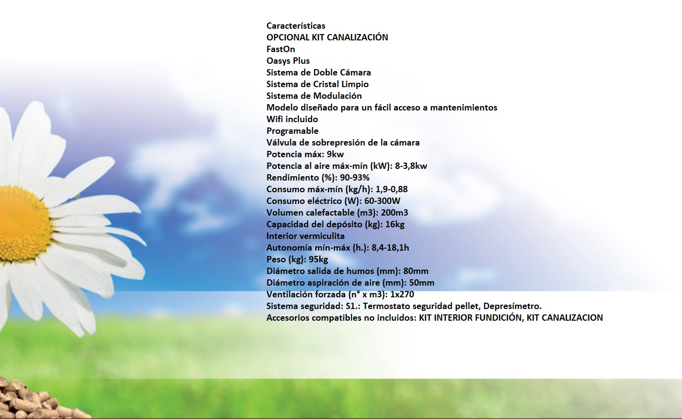 iva incl.La estufa de pellets Trebol de Bronpi destaca por un diseño sencillo pero con unos colores de lo más vanguardista. Esta estufa dispone de 9 kW de potencia para calefactar un habitáculo de hasta unos 200 m3 sin ningún problema.