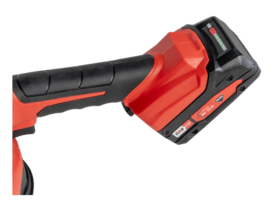 El QUAKE ENERGY CAS está alimentado por una batería* Li-HD 18 V 2 Ah (compatible con las baterías 18 V de la plataforma CAS de METABO). La batería ENERGY CAS cuenta con un display LED que indica al usuario el nivel carga restante. Si el display muestra 4 leds verdes, significa que la batería está por encima del 80% de su capacidad. Si el display muestra 1 único led, nos indica que la capacidad de la batería ha bajado del 20% y necesita ser recargada. La autonomía de la batería, al 100%, es de unos 60 minutos, aproximados, en trabajo continuado.