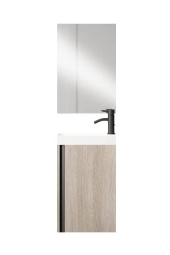 Mueble de baño modelo Loft de Visobath. La colección Lagos es ideal para amueblar espacios reducidos. Dispone de 1 espejo de 40x58, un bajo con lavabo de 1 puerta suspendido de fondo reducido de 22cm.