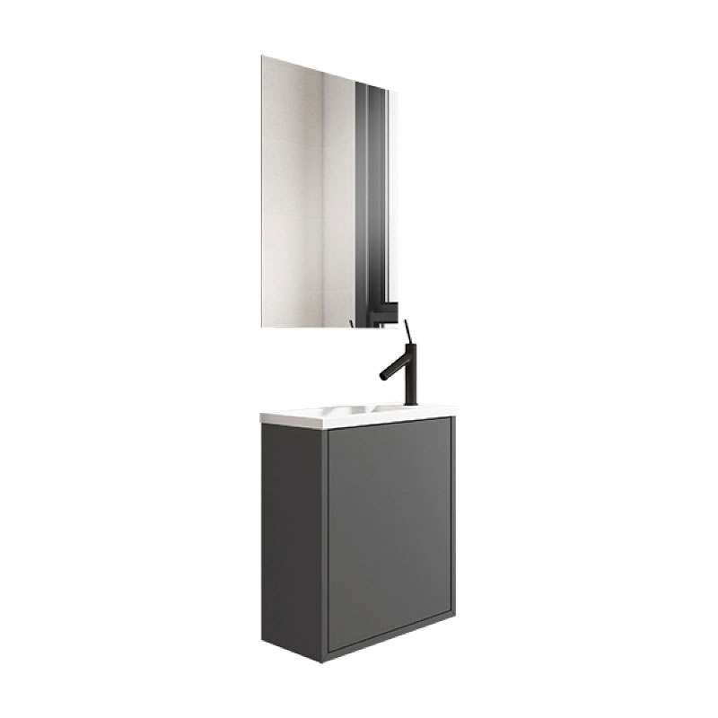 iva incl.Mueble de baño modelo Loft de Visobath. La colección Lagos es ideal para amueblar espacios reducidos. Dispone de 1 espejo de 40x58, un bajo con lavabo de 1 puerta suspendido de fondo reducido de 22cm.